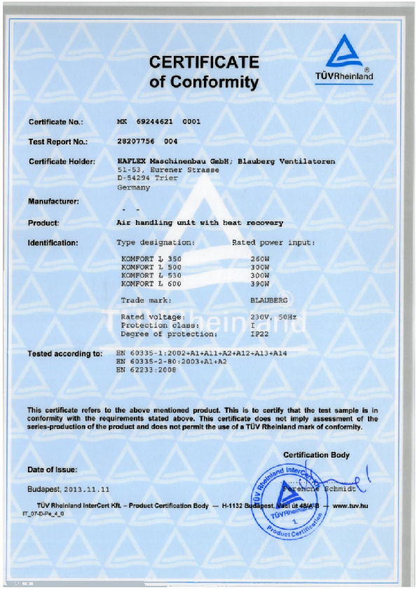 KOMFORT L - certificate LVD