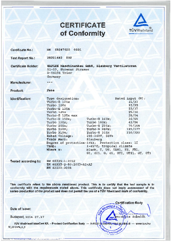 Turbo, Turbo E - certificate LVD