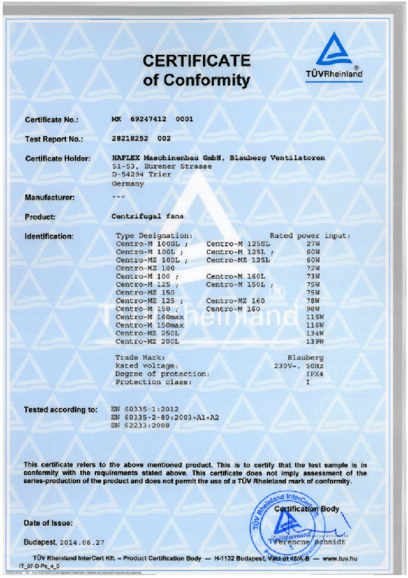 Centro-M, Centro-MZ - certificate LVD