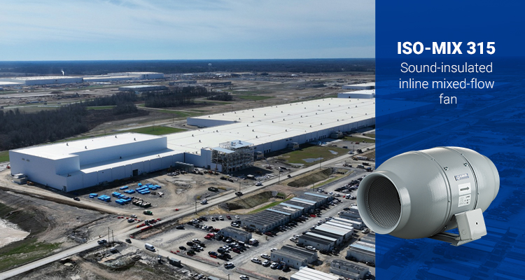 The BlueOval City ventilation system is designed to ensure full compliance with regulatory requirements for air quality in production facilities, as well as low noise and power consumption. To create such a system, the developer decided to use energy-efficient and silent mixed-flow inline fans Iso-Mix 315, which fully meet the modern requirements of industrial enterprises.